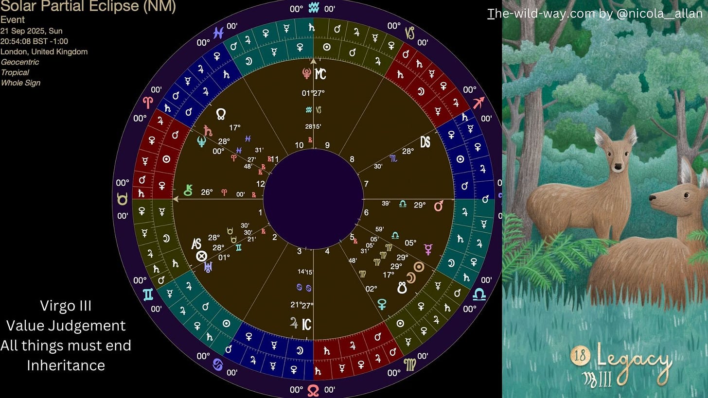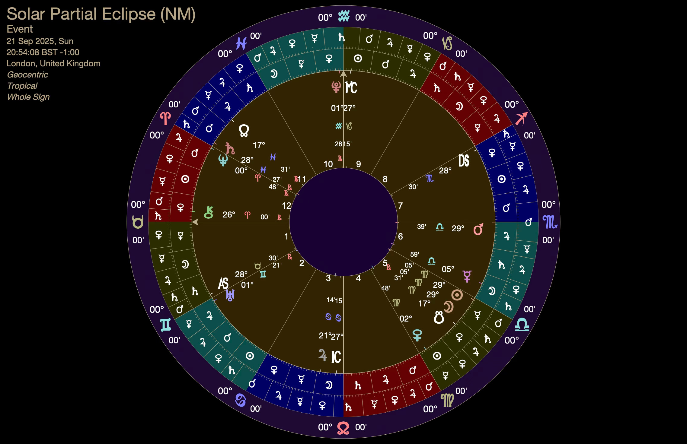 Those of us with planets or angles in Virgo which are activated by this eclipse cycle may find the time emphasises discernment, organisation, refinement, and service, with an evolving narrative around clarity, purification, and practical action over time.
