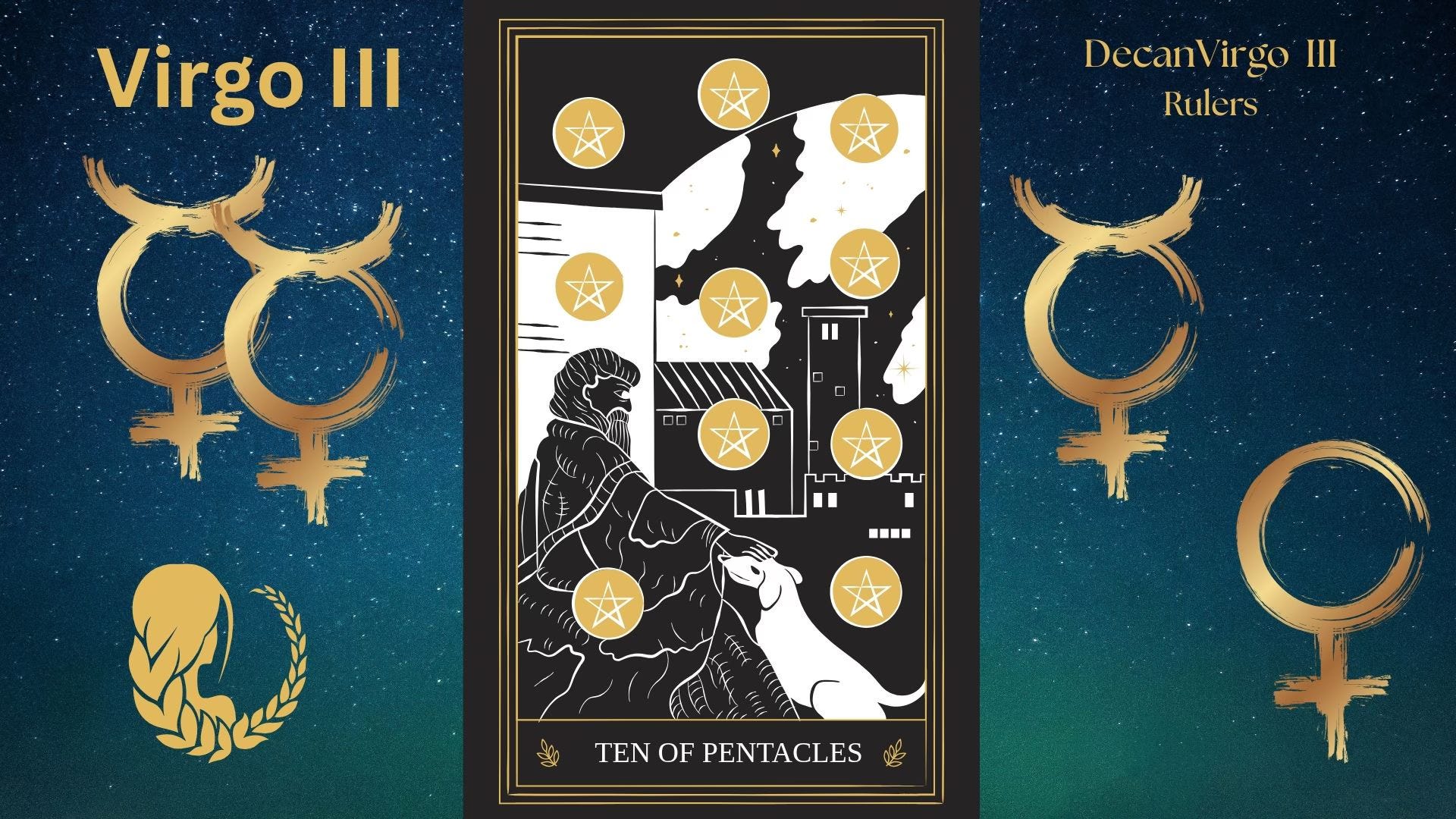 Virgo III, ruled by Mercury and Venus, brings a focus on value judgment, refinement, and the appreciation of what endures. The Wild Ways description, "All things must end", ties in closely to the 10 of Pentacles, which asks us to consider what will remain after us, not just in material wealth, but also in the lessons we impart, the lives we touch, and the traditions we uphold and pass on to others.